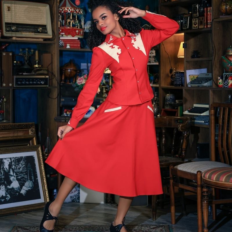 Skirts & trousers categories are the building blocks of a versatile vintage inspired wardrobe. The fans of classic London style should never miss the chance to find a fresh alternative to what they will see in other retro clothing stores in London. Select your swing skirt, either pencil or circle cut, to give a playful glimpse of 1950s style. You can evoke the 1960s with higher waistbands and structured cuts highlighting your silhouette. You can pair them with tucked-in blouses to capture the perfect features of Camden's vintage clothing shops.