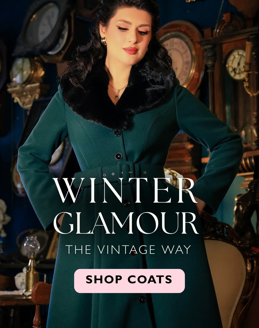 Collectif London’s Coats & Jackets category is a testament to warming you up on cold winter days. The coats and jackets collection is filled with vintage inspired gems varying from faux-fur- trimmed swing coats to sharp trench coats. Nuit and heather-quilted velvet pieces embrace the elegance of the 1940s, with envelope-skirted princess coats bringing a feminine touch to your perfect style. The flattering fits and timeless details like oversized buttons and nipped-in waists deliver what the most stylish vintage clothing stores in London should offer.