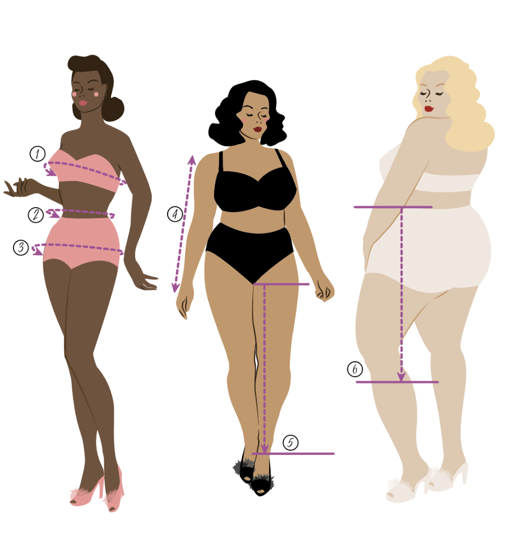 We cut to a traditional vintage inspired shape, so it’s really important that you check your exact body measurements rather than assuming. Think about your bust, hip and waist measurements before assuming an item will fit.