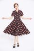 Oh Caterina! Our most-loved style is back with a spooky twist! The Caterina Bite Me Darling Swing Dress has been created in a black base printed with vampy lips, ready to bite! Perfect for vintage or alternative lovers, and everyone in between! Accommodates a petticoat, but looks equally beautiful without one.