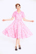 Oh Caterina! The Caterina Some Bunny To Love Swing Dress brings all of the features you love, in a stunning new print. Loving rabbit couples bounce and kiss amidst love hearts and roses set against a pink background. Caterina's curved collar and thin belt create a stunning statement look. Accommodates a petticoat, but looks equally beautiful without one.