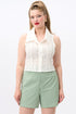 The Cerci Gingham Green Shorts are a 40’s style check short, perfect for summer. These shorts are high waisted and button at the side for a beautiful vintage inspired silhouette. Perfect when paired with coordinating jacket and blouse.