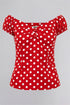 The Dolores Top is a classic Collectif best seller. This vintage 1950s peasant style top has elasticated puff sleeves with a classic sweetheart neckline. She's figure hugging, and finishes at the hip with a side zip. She also features bust pleating with half moon button detail, and is a must have for all you rockabilly dolls in our polka dot fabric. If you don't have one yet, what are you waiting for?