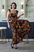 Looking for a vintage-inspired summer dress, thats also perfect all year round - meet the Katrina Gold Leaf Flared Dress! This dreamy style features a dark floral and leaf print with tones of gold, pumpkin spice, cream and purple.