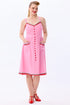 We're dreaming of picnics in sun-soaked gardens with our stunning Kimberly Cherry Trim Swing Dress. She's a strappy number with a v neck and shirring at the back for a comfortable fit. She flares from the waist and ends approximately below the knee, with handy patch pockets at the front.