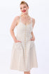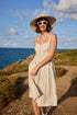 Were dreaming of picnics in sun-soaked gardens with our stunning Kimberly Grid Check Swing Dress in Ocean. She's a strappy number with a v neck and shirring at the back for a comfortable fit. She flares from the waist and ends approximately below the knee, with handy patch pockets at the front. The light sandy blue base fabric is criss crossed with check blue lines.