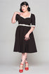 Meet the gorgeous Sadie 50s Dress! Coming in a super vintage inspired shape, it's sure to make a statement with its contrasting white trim on sweetheart neckline and cuffs, and the large removable bow at the center of the neckline. Change up your look and wear with or without the red bow! Style yours with a petticoat and heels!